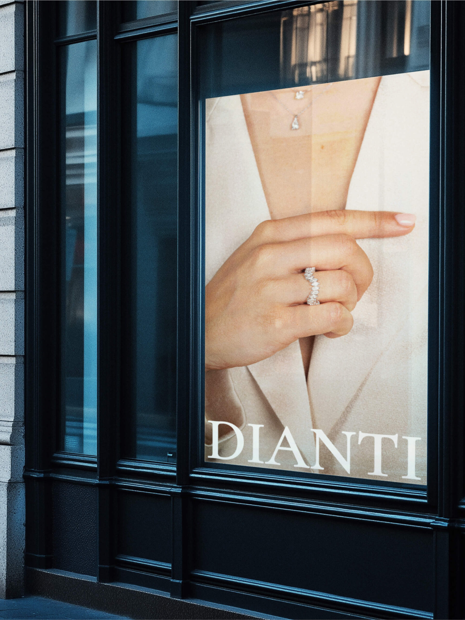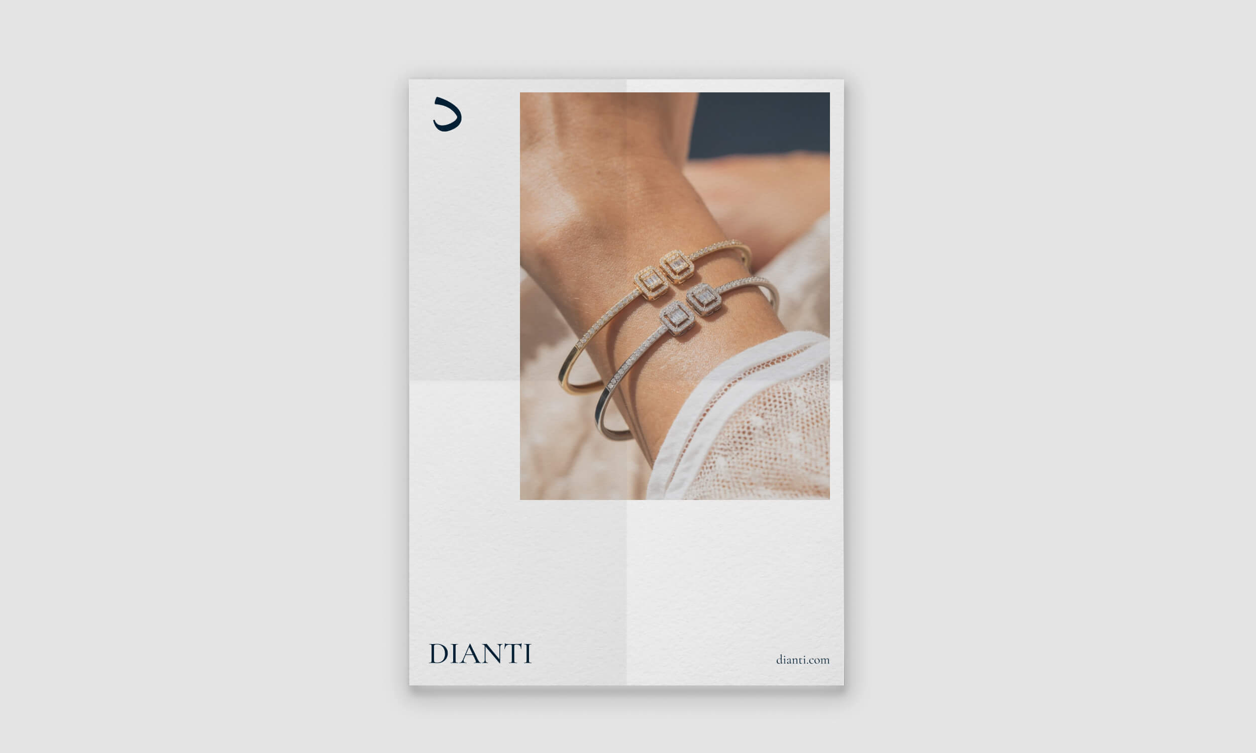 The brand identity includes a sophisticated logo design inspired by the brilliance of diamonds and the elegance of fine jewellery. A refined colour palette and bespoke typography were crafted to evoke a sense of luxury and modernity, aligning with Dianti's reputation for timeless luxury.
